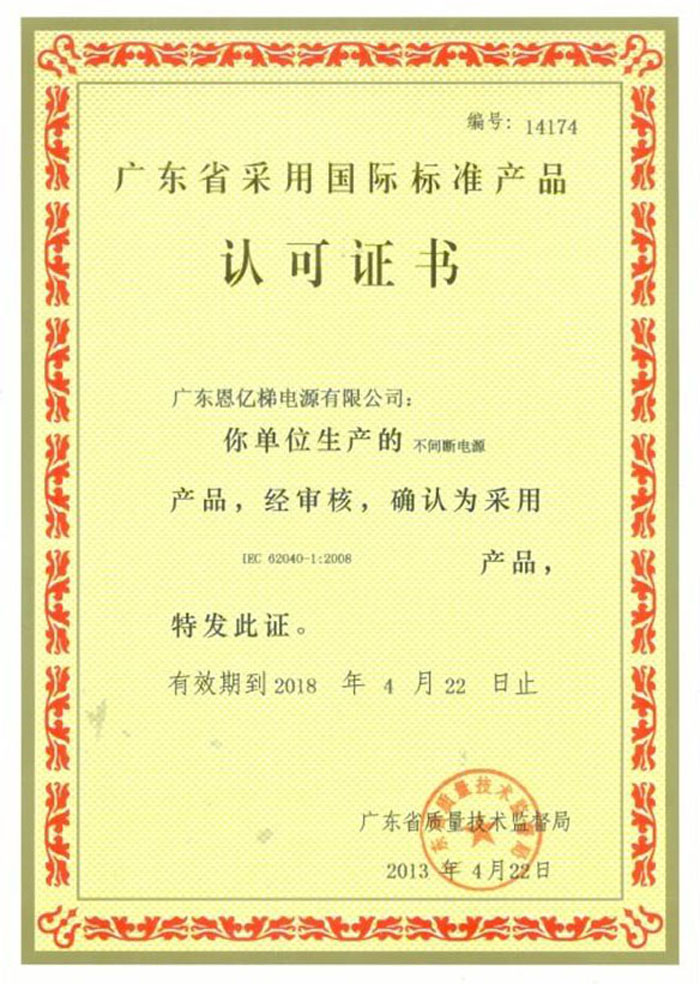 廣東省采用國(guó)際標(biāo)準(zhǔn)產(chǎn)品認(rèn)可證書