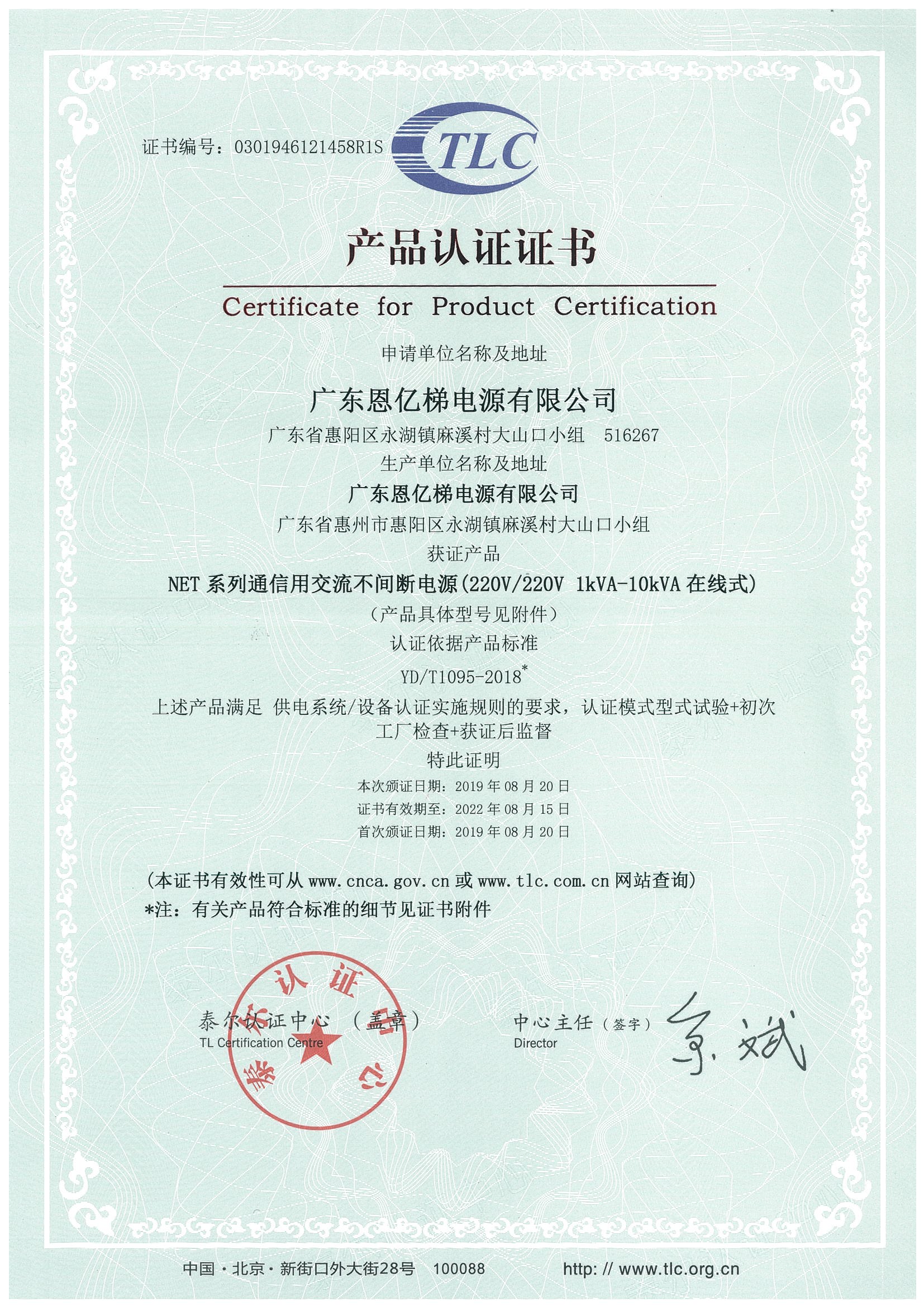 泰爾認(rèn)證(不間斷電源單進(jìn)單出)