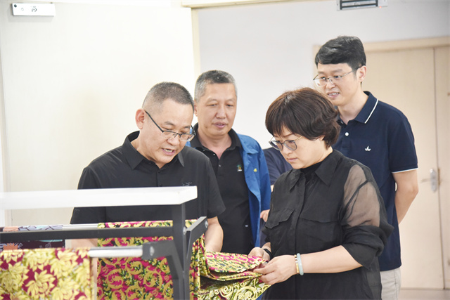 5月28日,由中國紡織行業(yè)創(chuàng)意與協(xié)同設(shè)計重點實驗室主任李斌紅、中國紡聯(lián)生產(chǎn)力促進(jìn)部副主任、中國紡織信息中心產(chǎn)品開發(fā)部主任陳小麗帶隊的“紡織行業(yè)產(chǎn)品開發(fā)創(chuàng)新秘書處調(diào)研專家組”到公司進(jìn)行考察調(diào)研。公司黨委書記、董事長盛守祥,副總經(jīng)理王超,技術(shù)總監(jiān)、工程技術(shù)研究院院長孫紅玉陪同調(diào)研。